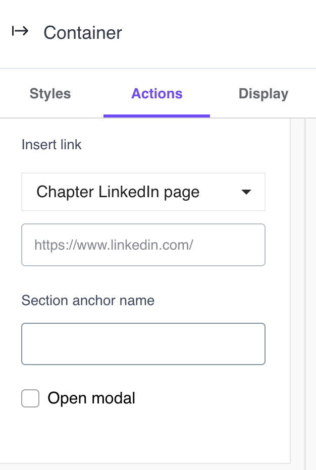 Containers can be assigned to Actions, which will let them open links of the Chapter
