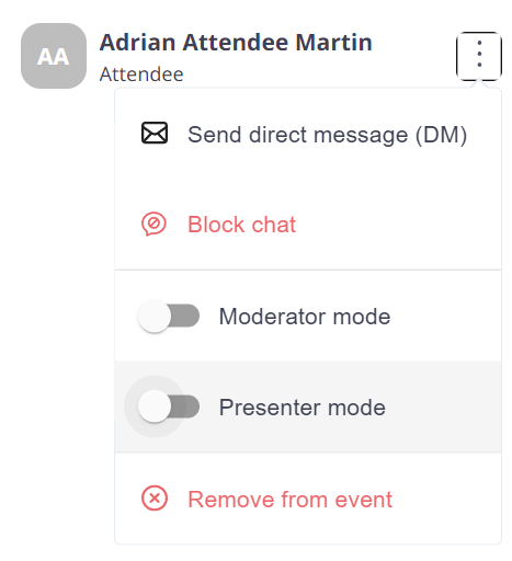 If you didn't enable the Presenter mode right after joining the event, you can still enable it from the Participants view.