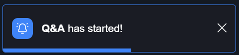 - After the Q&A is enabled, all the attendees will receive a notification popup