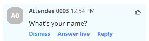 - Hosts can answer the question live on air or reply to the question online. The question will only be visible to the host and the attendee who asked the question.
