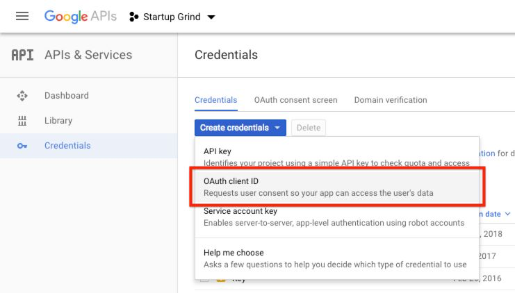 https://www.startupgrind.com/ - On “Authorized redirect URIs” include the following: