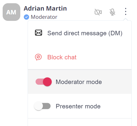 - After the process is finished, you will see the person as a Moderator in the "Participants" view.