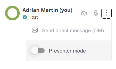 If you didn't enable the Presenter mode right after joining the event, you can still enable it from the Participants view.