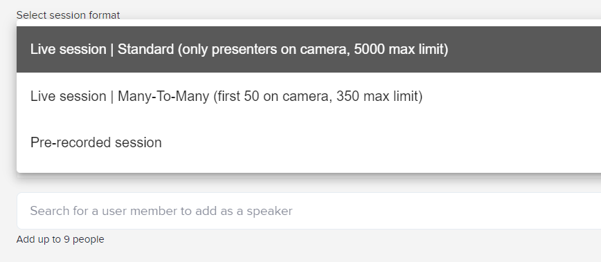 Live session | Standard (only presenters on camera, 5000 max limit)