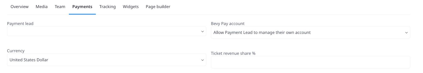 - Make sure that Bevy Pay account is set to Allow Payment Lead to manage their own account.