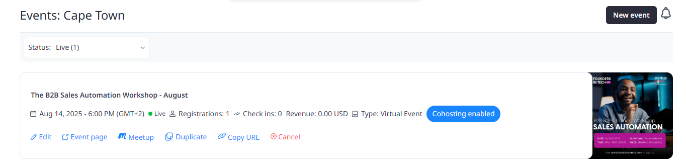 also - p.s. If you click on the card (not the links), it'll take you to the OVERVIEW of the page, which is a great way to see what's going on with the event. We will be bringing more insights and actions, etc, to that page next year.